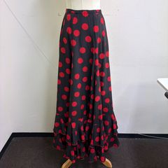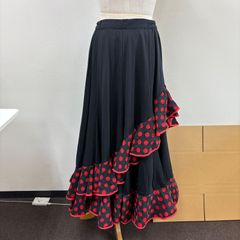 フラメンコ衣装 スカート ファルダ 黒 ブラック 赤 ドット 裾フリル