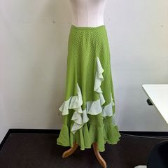 フラメンコ衣装 スカート ファルダ 黄緑 ドット フリル