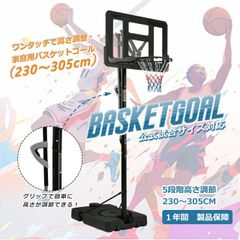 バスケットゴール 公式&ミニバス対応 230-305cm ワンタッチで高さ調整 5段階高さ調節 移動可 工具付き ゴールネット バックボード リング ミニバス 一般用 屋外用 1年保証付き