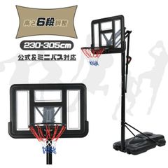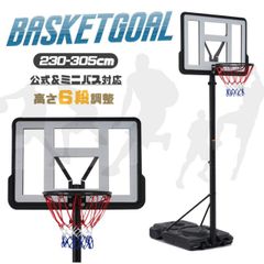 バスケットゴール 屋外用 公式試合サイズ ミニバス対応 6段階高さ調節 230-305cm 移動可 工具付き ゴールネット バックボード リング ミニバス 遊び 部活練習用 一般用 家庭用 子供 大人 1年保証