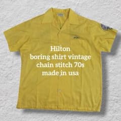 HiltonボーリングシャツUSA製70sイエローチェーンステッチヴィンテージL