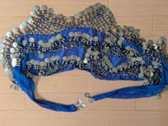 ベリーダンス ヒップスカーフ 青 コイン 豪華装飾