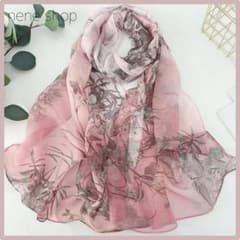 シフォン ストール 夏 大判 薄手 UVカット スカーフ 花柄 パープル v