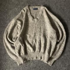 80s vintage メンズ Vネックセーター 総柄 立体 レトロ 古着 L