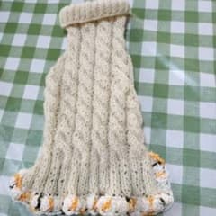 ペット用ニットウェア 茶色と白 ポンポン付き