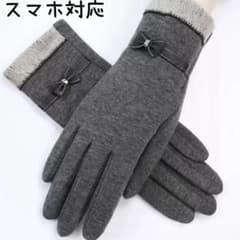 手袋 グレー レディース 可愛い 防寒 冬 スマホ対応 韓国 リボン