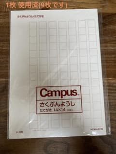 コクヨ Campus 作文用紙 B4特判 14×14 縦書き 9枚(1枚使用済)