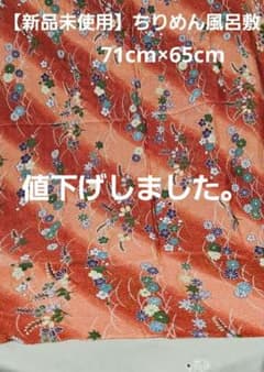 【新品未使用】ちりめん風呂敷☆紅葉×花柄オレンジ系レーヨン100%