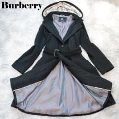 ✨BURBERRYバーバリー✨カシミヤ混 ベルト ロングコート 黒 ノバチェック