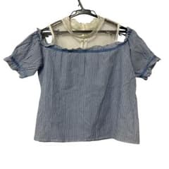 オフショルダー 青 白 ストライプ シャツ M レース 透け感