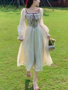 ドレス ワンピース 花柄 レーストリム レースアップフロントドレス