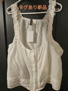 ホワイトタンクトップ レース付き コットン 森ガール H&M XL ノースリーブ