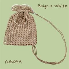 【SALE】ナップサック ショルダーバック ハンドメイド かぎあみ ベージュ