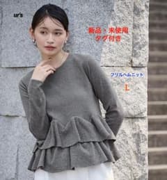 ✴︎新品未使用✴︎ユアーズursフリルヘムニットトップス(チャコール)L長袖ペプラム