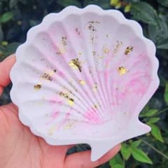 貝殻トレイ ピンク×ゴールド 高品質石膏 ハンドメイド インテリア 小物入れ
