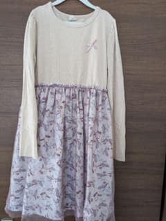 リブ切替え ワンピース チュール 長袖 ドッキング 150cm 花柄