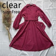 clear【Free】マゼンタ シャツ ワンピース 長袖 ロングワンピ リボン