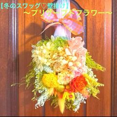 【冬のスワッグ♡プリザーブドフラワーアレンジ壁掛け】〜ビタミンカラー〜