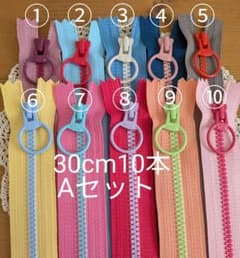YKK A 30cm 片開き カラフル コンビ リング ファスナー 10本