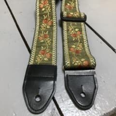 ギターストラップ 緑色の葉の刺繍