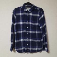 ユニクロ ブロードシャツ チェック ボタンダウン ブルー×ホワイト Lサイズ