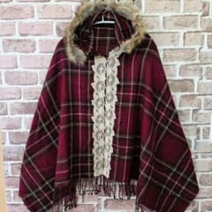 axes femme 2way ファーフード・ブローチキルトピン付きポンチョ