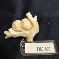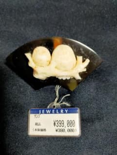 鼈甲扇面台に白サンゴ梟二対帯留