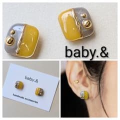 ハンドメイドピアス イヤリング 小ぶり レジン イエロー シンプル【№034】