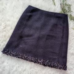 トゥモローランドコレクション ミニスカート フリンジ ツイード ネイビー 36