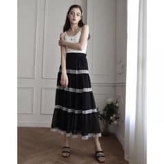 epine エピヌ chiffon lace tiered long skirt
