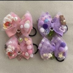 チュールリボンヘアアクセサリー ピンク パープル ハンドメイド