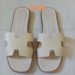 hロゴ風 ホワイト サンダル ミュール フラット ペタンコ