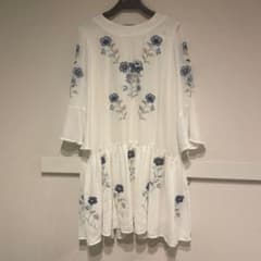 mysty woman カラフル刺繍ティアードワンピース ホワイト 七分袖