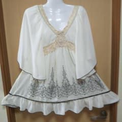 レース装飾のホワイトチュニック