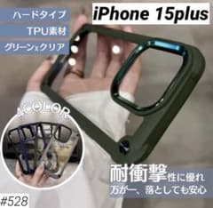 iphone 15plus ケース グリーン カーキ 耐衝撃 透明 ハードケース