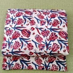 未仕立て袋帯 正絹 流水 牡丹 桔梗 白×赤リメイク推奨