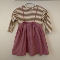 ボーダー ドッキングワンピース ピンク リボン 120 長袖