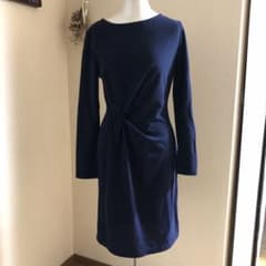 グリーン&ネイビー 幾何学模様 長袖ワンピース