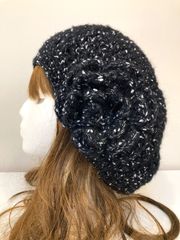 ハンドメイド ブラック パールネップ ベレー帽 ニット帽 ビーニー