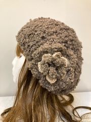 ハンドメイド ブラウン ループヤーン モコモコ ベレー帽 ニット帽 ビーニー