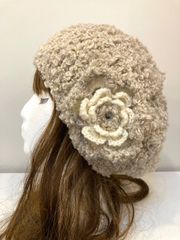 ハンドメイド ベージュ ループヤーン モコモコ ベレー帽 ニット帽 ビーニー
