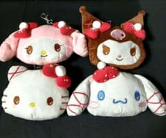 フェイスリールパスケースぬいぐるみ キティ シナモロール クロミ マイメロディ