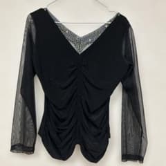 社交ダンスレッスンウェアにも! Kory ビーズ装飾 黒 長袖 トップス