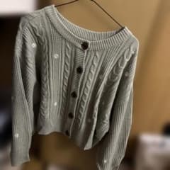 オリーブグリーン ケーブル編みニットカーディガン