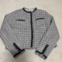 LOUNIE ノーカラージャケット ホワイト・ネイビー