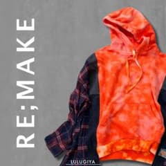再構築 タイダイ ブリーチ パーカー チェック×デニム ドッキング*古着リメイク
