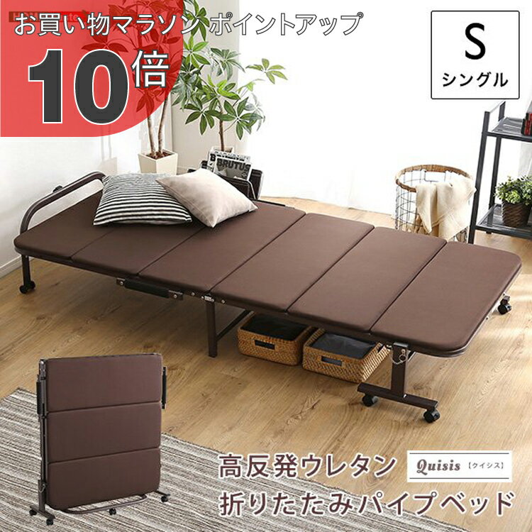 【ポイント2倍!マラソン期間中!】 ウレタン 折りたたみ パイプベッド シングルサイズ Qu