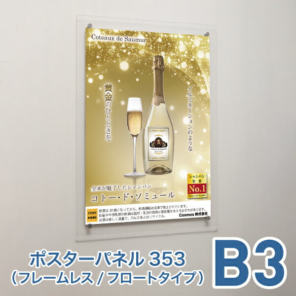 ポスターフレーム【ポスターパネル AP350 B4 ステン・木目】屋内 片面 表面4辺開閉式 差し替え簡単 簡易 額縁 壁掛け 角型 シンプル フラット スタイリッシュ ナチュラル 枠