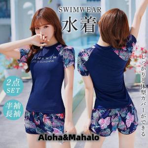 水着 レディース 体型カバー フィットネス水着 セパレート タンキニ 半袖 ショートパンツ ママ水着 スポーツ 運動 20代 30代 40代 50代