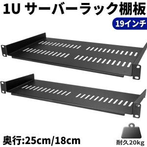1U サーバーラック棚板 19インチ装置ラック&キャビネット用放熱スリット付きカンチレバートレイ 高耐久性スチール 耐荷重20kg 奥行25cm/18cm ブラック